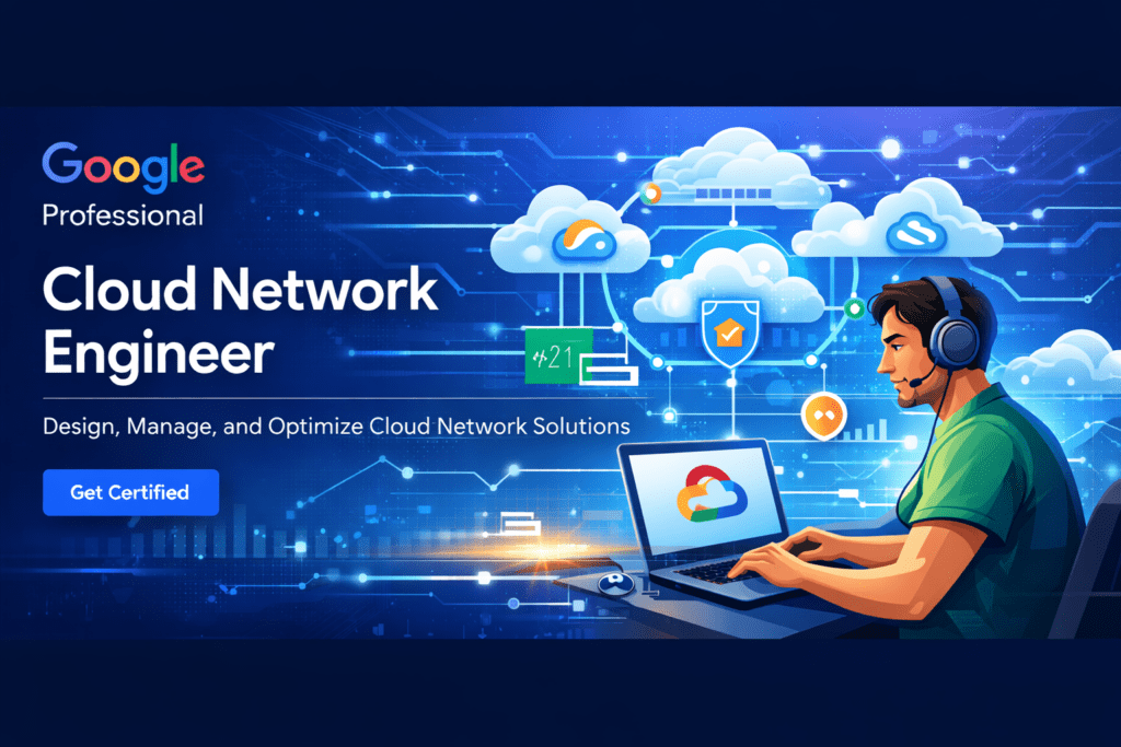 The Google Professional Cloud Network Engineer course by CloudNet India is an advanced, industry-aligned program designed to prepare professionals to design, implement, manage, and optimize secure, scalable, and highly available network architectures on Google Cloud Platform (GCP).